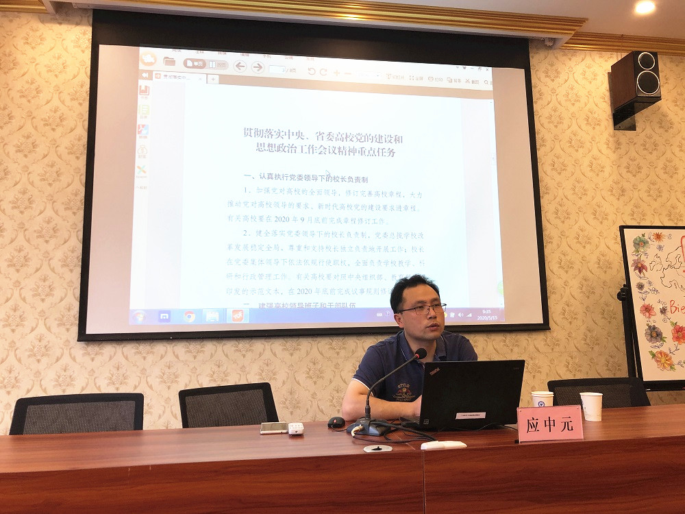 此次业务培训会的主题是二级学院决策议事机制规范,讲座分三块内容。应中元从当前学校由独立学院转为公办普通本科院校的形势讲起,结合浙江省委有关高校党建重点工作、学校“抓院促系”建设工作等上级文件精神,向大家普及了有关学校在行政管理体制上与之前的区别以及未来的管理模式。第二部分从二级学校党委会、党政联席会等决策类会议作为切入点,通过介绍会议记录与会议纪要的书写要点,在规范性、技巧性两个层面指导大家如何书写此类文本,并通过具体案例诠释了这两类文本的重要性。最后将二级学院在各类决策议事工作中需要注意的工作顺序与方法进行了分析,通过具体案例带领大家进行了细致的解读党政联席会议和党委会议记录和纪要的撰写要点。