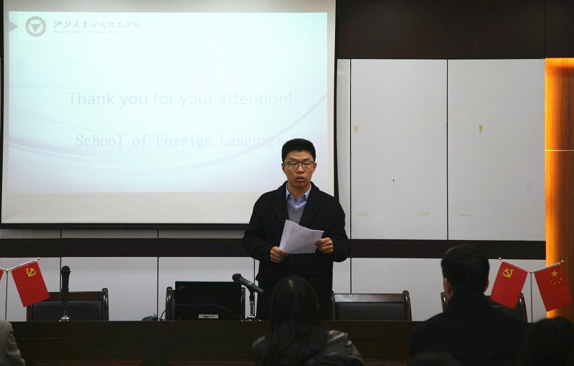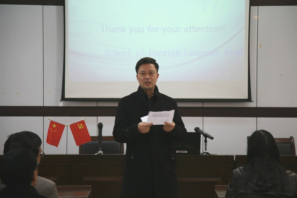 学校党委副书记黄光杰对学院领导班子及成员在2019年工作做了点评,对学院领导班子及成员所取得的成绩表示了充分的肯定,希望学院领导班子继续发挥担当作用,尤其在凝练学科专业方向、师资学历职称提升和大学外语教学改革上继续做好整体规划和分步实施工作。