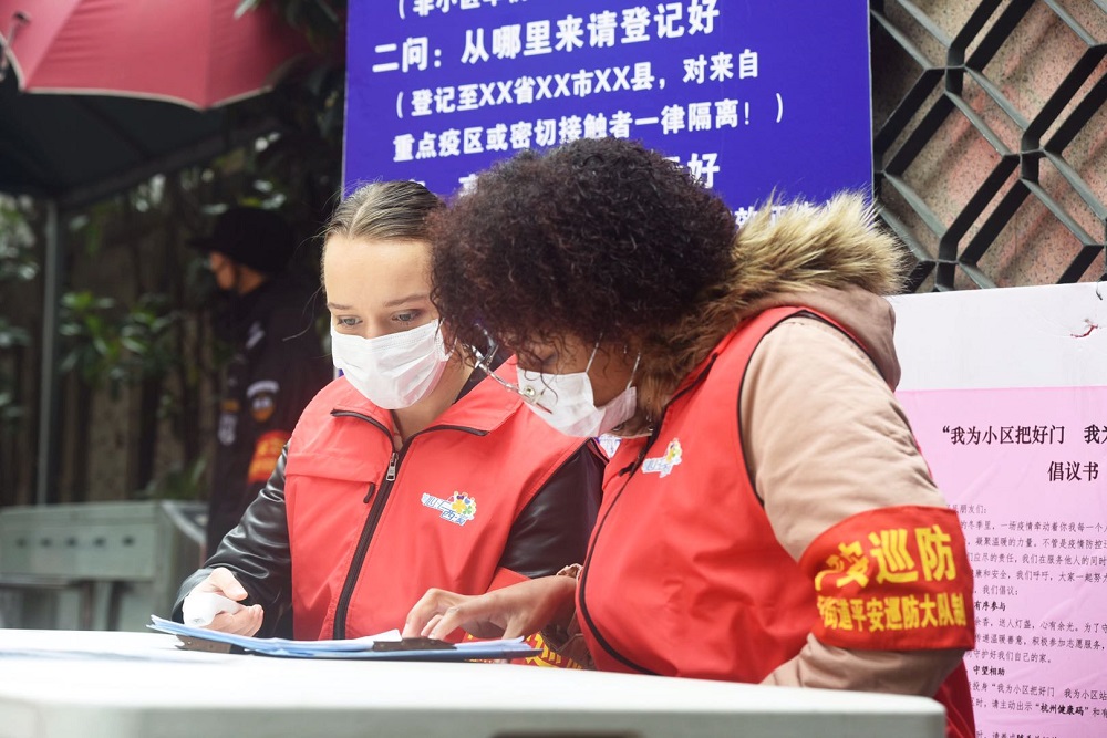 波兰研究中心主任王小潞教授的硕士生莫莉卡也来自波兰,目前就读于浙江大学传媒学院汉语国际教育专业。疫情期间,莫莉卡选择留在杭州,并报名成为了杭州花园亭社区的一名志愿者,主要负责翻译社区安全公告、外籍人员登记表以及健康码申领模板的英文版。另外,莫莉卡还协同另外一位来自古巴的志愿者共同录制视频,为即将返回社区的外籍人士示范报备手续流程。杭州花园亭社区是一个外籍居民密集的国际化社区,两位志愿者的工作使社区辖口的管理更加通畅高效,因此得到社区的一致好评。