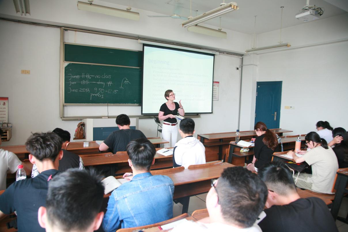 玛格达目前担任职场英语视听说、初级商务英语写做、艺术符号学、波兰语入门课程的教学工作,周课时14节,所带的学生300余人。她所开设的波兰语辅修课受到学生的普遍好评,对非英语专业学生的波兰语学习和波兰在“一带一路”建设中的作用起到非常好的普及作用。除日常教学工作外,玛格达莱还和其他外籍教师一起组织每周三晚上的学校英语角活动,帮助大学生提升英语口语水平。目前,她正在构思在宁波市举办首个波兰语口语角的活动。