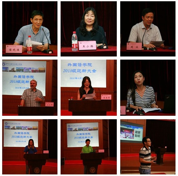 伴随着庄严的国歌声,迎新大会正式拉开帷幕。谌晓煜书记向2018级新生一一介绍了到会的领导和老师。王小潞院长向全体新生致欢迎词。她代表学院的老师和同学,对2018级新同学们表示了热烈的欢迎。同时她给新生进行了一番关于理想与行动的“教育”,告诫学生们要学习王阳明先生的“知行合一”,要将理想付诸行动。接着由学院班导师代表周维老师和外籍教师代表Andy致辞,他们给了新同学最真挚的祝福,也告诉新生们一些生活交际的建议,让他们四年的大学生活能过得充实有趣。