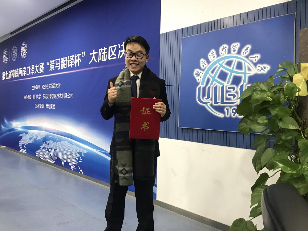 2017年12月10日,我校galaxy银河官网最全网站厉修远同学代表华东区,在北京对外经济贸易大学参加了第七届海峡两岸口译大赛大陆区决赛,并取得了大陆区第二名,名次仅次于广外的翻译硕士,并将于明年四月赴香港参加亚洲区总决赛。