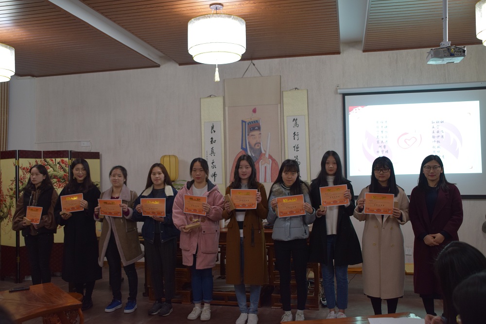 经过个人申报、组织评定,阮吉娜等18名同学被评为galaxy银河官网最全网站2017年度优秀志愿者,学院团委书记芦美丽老师为志愿者们颁发了奖状。会上,优秀志愿者代表进行了发言。英语151班何警同学提到,自己在很早之前就加入了家乡的环保志愿者队伍,进入大学以来,她参加了生命关怀志愿服务、龙观乡爱心支教等志愿服务活动不下10场,在帮助他人的同时也锻炼了自己的能力。去年12月,她得知原先的辩论队友、优秀毕业生被确诊为急性白血病而需要大量用血,于是她第一时间联系老师并在学院NIT外语人微信公众号发布,呼吁师生爱心捐血,一时间全校师生纷纷转发,爱的呼唤传遍整个校园,该条微信阅读量达到了26000多,许多师生也纷纷前往献血点进行捐血行动,身体力行。这件由无数小爱汇成大爱的“小事”一直让她暖暖的,也更加坚定了她服务她人的信念。英语153班王云飞同学在发言中提到自己中秋节参加送月饼活动的难忘经历;“我们和阳明乐咖啡的静默咖啡师一起将热气腾腾的自制手工月饼装袋分装,然后冒着细雨,将盛满心意的月饼和咖啡券送到学生公寓的各个角落,为最美的后勤阿姨们送上祝福。很多阿姨对收到的“特别礼物”感到惊喜,也很感谢同学们的惦记……”从与会同学们的讲述中,爱与温暖缓缓流淌,昨晚的阳明学堂也增添了一层别样的美好……