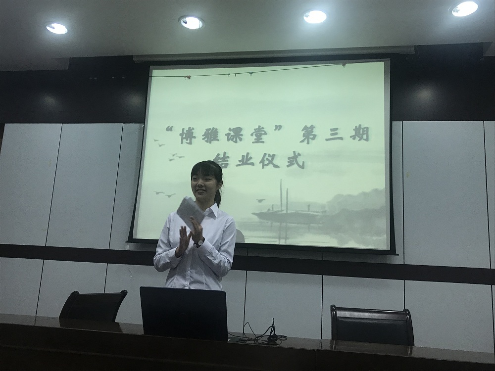 3月26日晚,学校博雅课堂第三期结业仪式在SC405举行。指导老师芦美丽和80余名学员代表参加了活动。