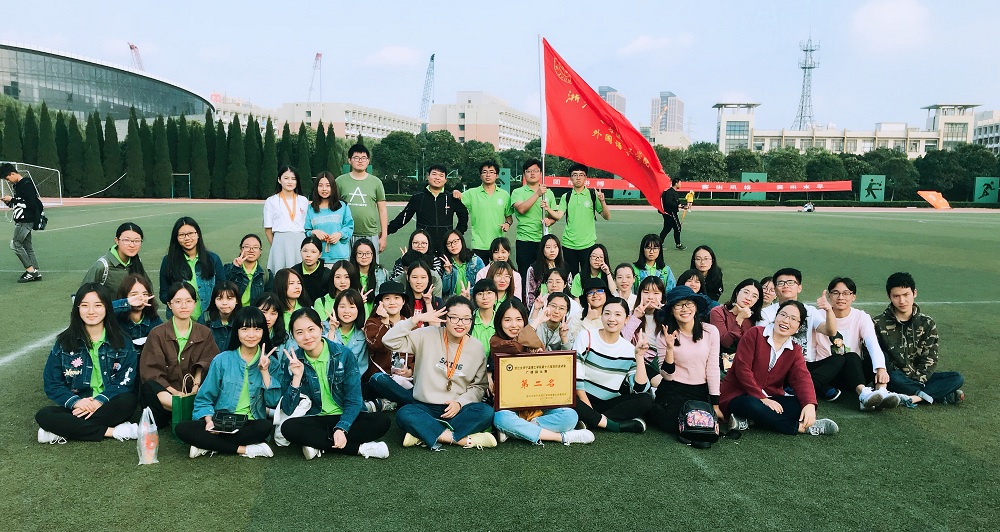 2017年,galaxy银河官网最全网站运动会组织有序,动员广泛,学院教师和同学在运动场上挥洒汗水,激扬青春,收获荣誉与梦想,用行动阐释体育精神,很好地展示了外语师生“奋勇争先、顽强拼搏”的精神风貌。日语161班陈旭浩同学在5000米赛场上不抛弃不放弃,坚持到底的决心让人感动;商务英语152班周哲丞同学在男子组110米栏项目中犹如空中飞人,遥遥领先其他选手,不禁让所有外语学子心潮澎湃;商务英语161班张梦缘同学在女子4*400米接力项目遭遇运动员因伤无法上场的情况下及时挺身而出,做好补位接力,这种团队精神和集体意识具有很强的教育意义。今年,学院获校广播操比赛第二名,团体总分较往年也取得了很大的进步。此外,学院组织60名学生组建鲜花方阵,为校运动会开幕式助力添彩。