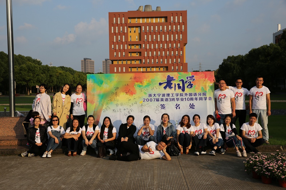 金秋十月,丹桂飘香。10月21日,浙江大学宁波理工学院galaxy银河官网最全网站2007届英语3班同学们重返母校,举行毕业10周年同学会。