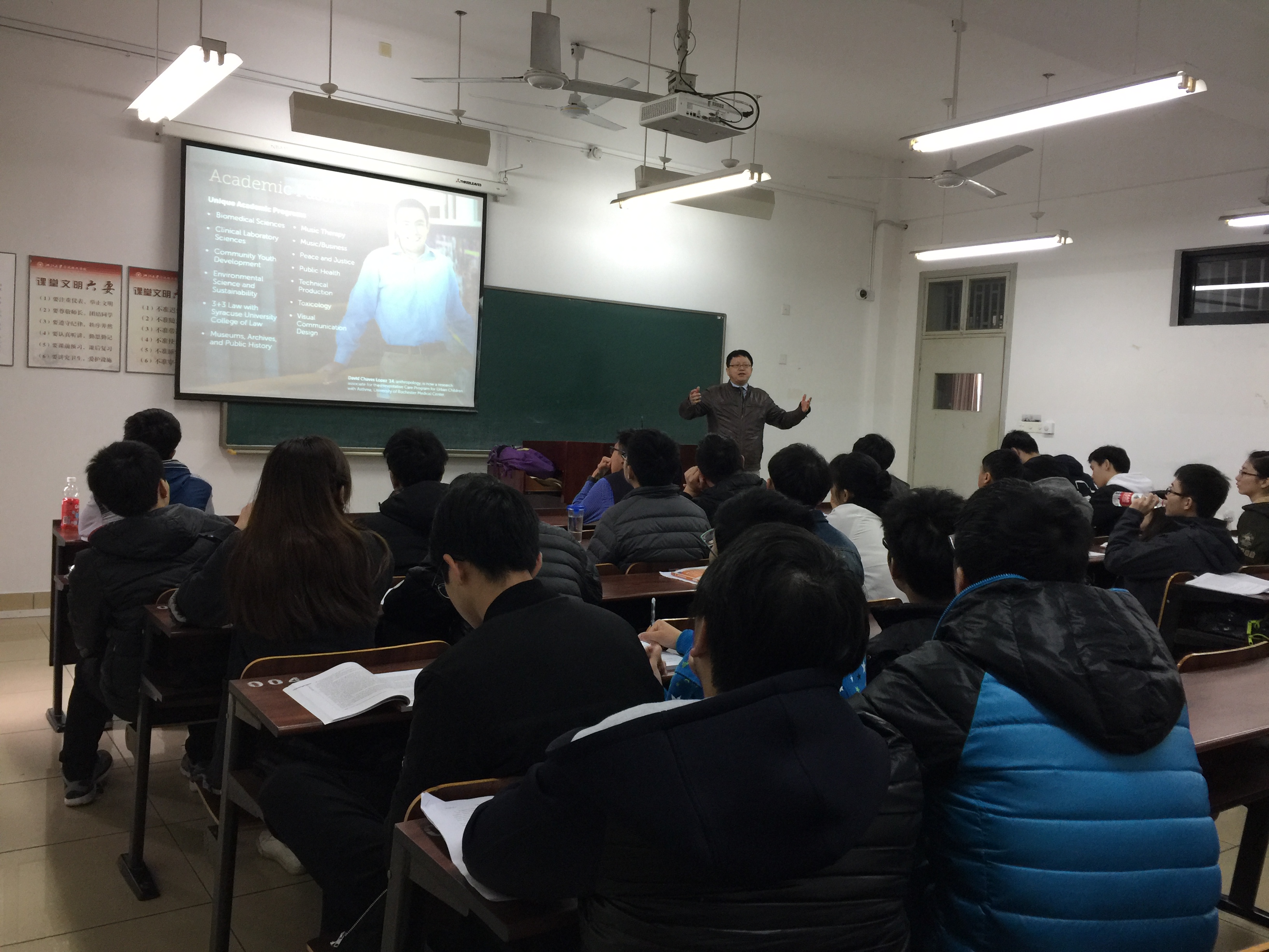 宋教授是galaxy银河官网最全网站的老朋友,这是宋教授第三次到访我院。宋教授刚刚到达学校就前往NB211教室,给同学们做了一场名为《走好人生的一小步—美国高等教育的现状》的讲座,他介绍了美国的高等教育相关的文化知识和美国大学的概况,他给我校学子提出了几点建议,他希望他们有机会到国外去学习进修,拓展国际视野,使自己成为有国际竞争力的人才。讲座后学生们积极提问和教授进行互动交流。