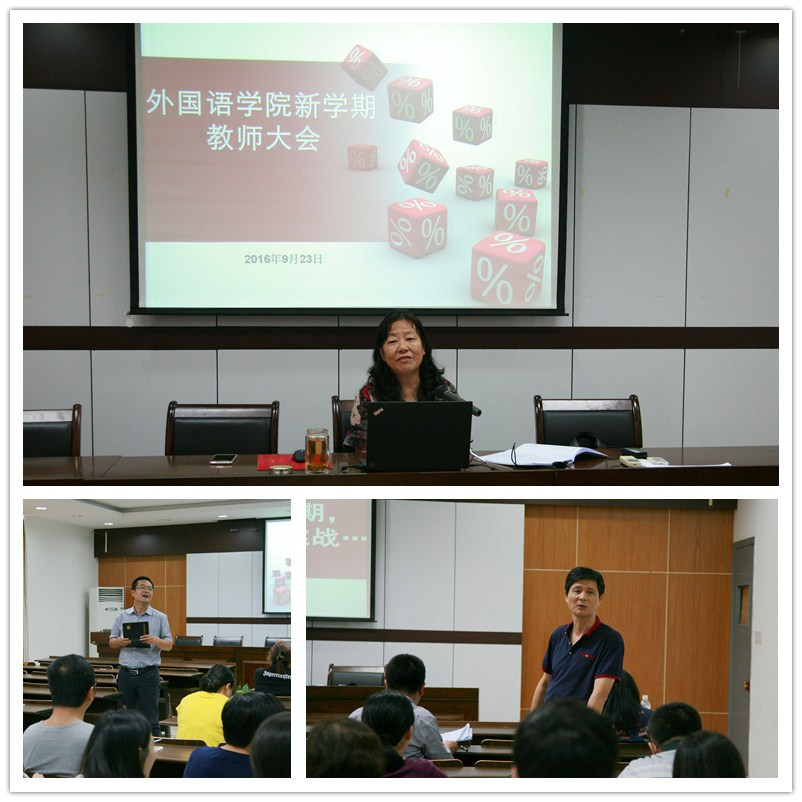 在回顾工作的同时,王院长表示,面对转型发展的新机遇,学院发展面临着新的挑战。全体教师更需要同心协力,做好优势特色学科申报,加强学科专业建设,大力提升师资队伍水平,深入开展“两学一做”学习活动,抓好教学规范秩序,开展新生始业教育、校园文化及文明寝室建设,启动毕业生就业工作,加强与海外院校的交流合作,开拓社会服务,开展BEC中级、在线剑桥外教英语等工作。此外,王院长还部署了15周年校庆活动、全国认知神经语言学高层论坛、波兰语言文化中心落成典礼等学院重点工作。
