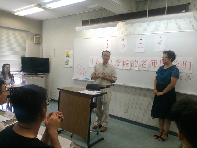 淑德日本语学院校长钱高莉英女士携全体教师在校门口列队欢迎同学们的到来,并举行了简单而隆重的开学典礼。出席开学典礼的日方代表有:校长钱高莉英、教务主任泽谷老师、此次教学班班主任木名濑老师、以及事务潘老师和徐老师。校长对同学们的到来表示热烈欢迎,并希望能在接下来20天的学习中了解日本、收获知识、建立友谊。