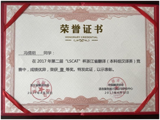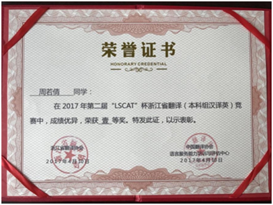 由浙江省翻译协会、浙江省高校外语教学研究会和中国翻译协会语言服务能力培训与评估中心(LSCAT)联合举办的第二届“LSCAT杯”浙江省笔译大赛结果于近日揭晓,我校学生表现出色,取得了优异的成绩。