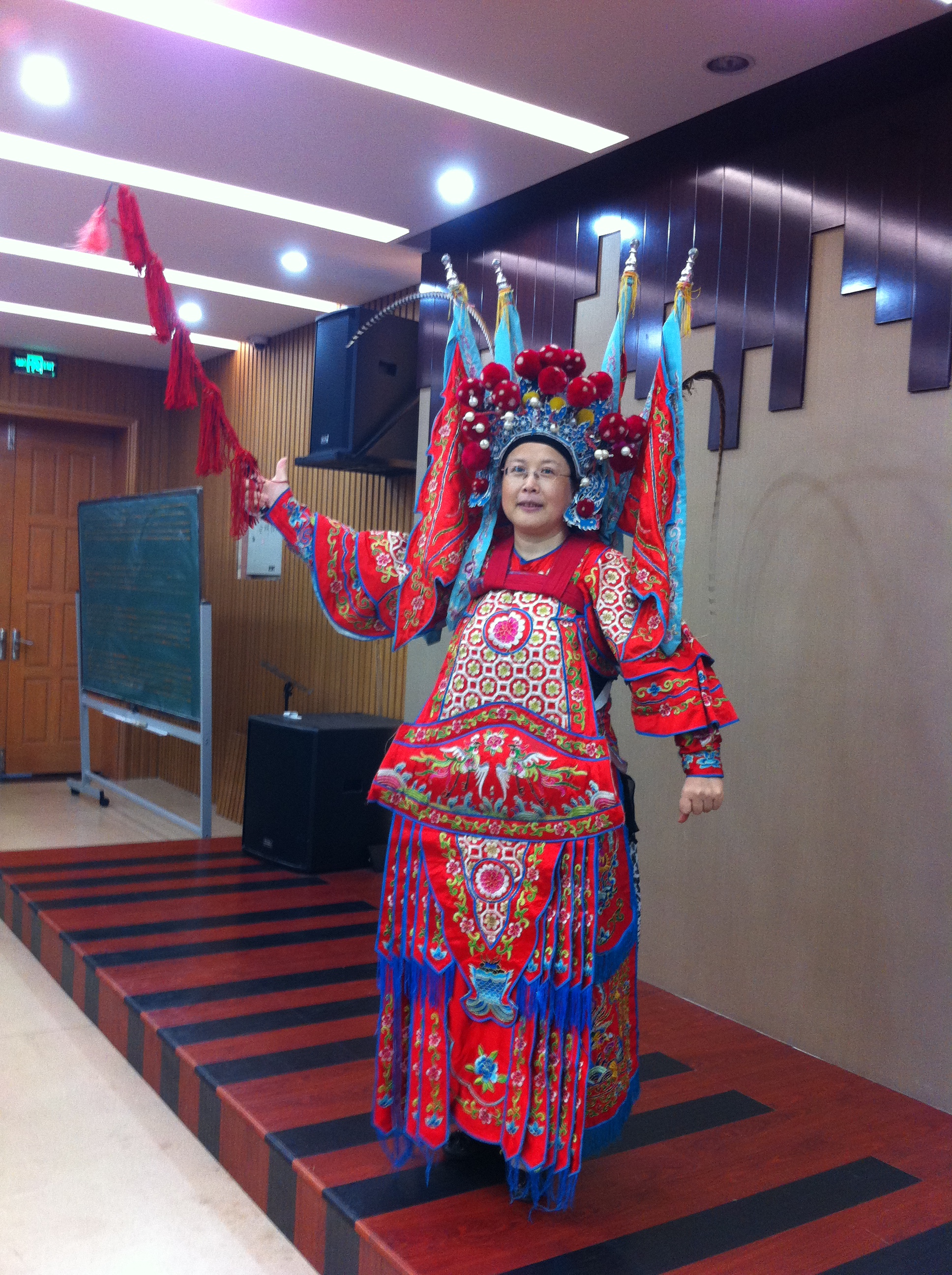 为了能在两个小时之内充分展现京剧艺术的魅力,又抓住波兰学生的注意力,尽量让语言不通的波兰年轻人能够对古老的京剧“一见倾心”,在选择剧目的时候陈老师花费了不少心思,考虑到波兰学生的语言问题,特意选取了以做功和打功见长的《拾玉镯》、《秋江》和《三岔口》几个经典片段,同时还兼顾考虑到了行当的问题。在观看经典剧目演出录像时,陈老师边讲解边提问,采用启发式教学。为了鼓励学生积极参与,对问题的回答不设唯一答案,只要合理、有独到见解都给予奖励,奖品是一个带有京剧人物吊坠兼具书签功能和启信封小刀功能的精美小礼品。为了给学生以真实和亲切感,陈老师还临时抱佛脚地学唱了几段,每天在家咿咿呀呀的练习,惹得家里人调侃为“业余票友”。从备课到上课到礼品的选择,陈老师件件事亲力亲为,唯恐准备不足导致教学效果不理想,据陈老师说整个备课过程中她本人真切地感受到了戏剧界的那句老话“台上一分钟、台下十年功”,仅仅两个小时的教学活动就已经已经花了她两月有余的时间,她还说自己也从中受益匪浅。