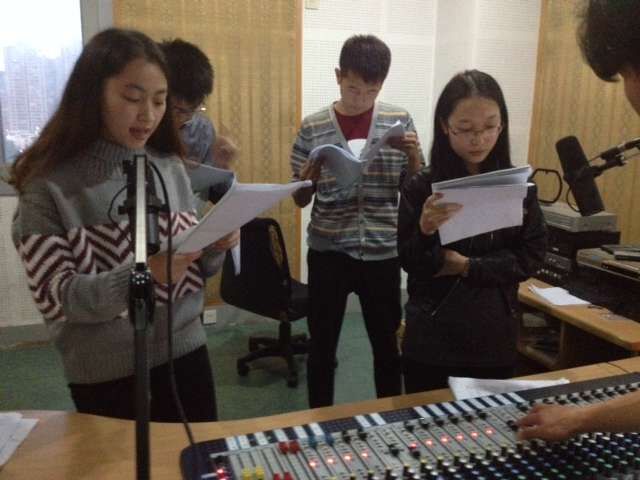连续多日的降雨在周四的这个下午停止,宁波呈现了难得一见的澄净蓝天。千面剧社的各位演员陆续来到了行政楼九楼的广播站,带着剧本和一颗激动的心走进了录播室。