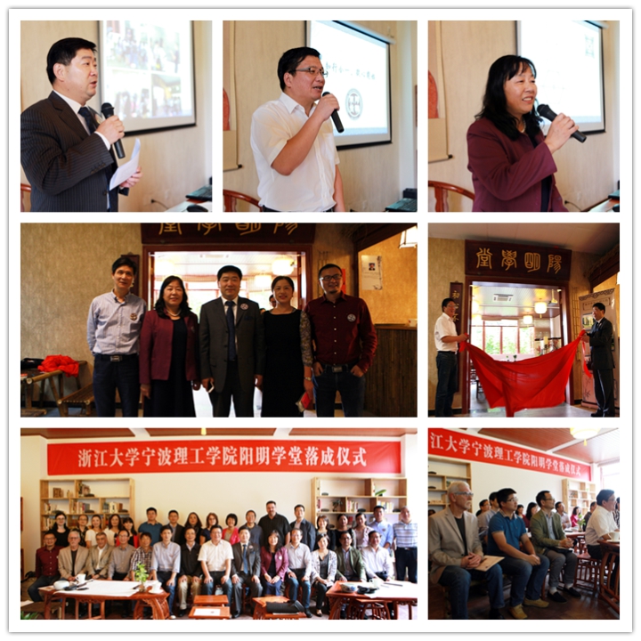 宁波市外办副主任陈国苗和学校党委副书记黄光杰为阳明学堂揭牌,揭牌仪式后,与会领导和嘉宾拍照合影并参观了阳明学堂。