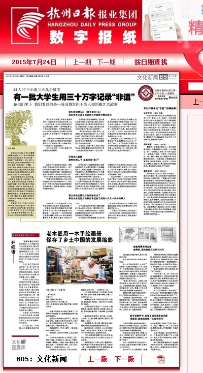 近期杭州日报媒体对我校galaxy银河官网最全网站学生“用三十万字记录非遗活动”暑期社会实践进行了报道,随后杭州宣传网、人民网、中国民族宗教网、中国教育在线等网站进行了转载和报道。