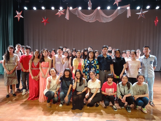 5月26日6点半,galaxy银河官网最全网站2015届“仲夏夜之梦”毕业生晚会在可珍讲堂正式开始。带着青春的不舍与毕业的祝福,galaxy银河官网最全网站2011级的学生和曾与他们一起度过四年的老师们,可爱的学弟学妹们一起度过了一个美好的夜晚。galaxy银河官网最全网站院长王小潞老师、学院党总支书记谌晓煜老师、学院副院长胡海鹏老师、副院长蔡亮老师,以及毕业班班导魏建老师、欧琛老师、邓凌志老师等应邀等参加了晚会。 晚会开始后,大屏幕首先以两位11级学生的毕业故事视频拉开序幕。在座的同学老师,跟随着他们的镜头走遍了理工的角角落落,回忆了曾经的点点滴滴。晚会由毕业班学生罗一圆、汤倩文、赵园园、曾倩文四位同学主持,他们的一言一行无不透露着对这个校园难以离开的拳拳深情。随后,洋溢着热情的合唱作为开场,拉开了仲夏夜的帷幕。紧跟着声乐队的表演,话剧队为我们带来了同样以“仲夏夜之梦”为题的话剧演出,带着童话色彩的剧情,略带幽默的表演,让在座都为之鼓掌。随后陈沁学姐为我们带来的日语歌曲《樱花纷飞时》,寄托着幸福的花语,悠扬动人。而由一群大男生表演的舞蹈《咋了爸爸》,诙谐搞笑,将全场的气氛引向了高潮。 互动娱乐之后,肆意着青春气息的舞蹈《青春修炼手册》使整个现场沉浸在了对青春的美好遐想之中。而由四位11级男生带来的创意节目《我的滑板鞋》,以中日英不同的朗诵语言,混合来自他们各自家乡方言风情,独特的音调、萌萌的动作,引得全场爆笑,更让人艳羡语言的无限魅力。 热闹过后,13级学生的班助们纷纷登台,为他们相处了两年的13级的学弟学妹们送上了祝福。随之,大四同学们的班导师们、宿管阿姨们也通过视频的方式对大四的同学们表达了内心最诚挚的祝愿。同时也对14届为团学工作一直默默奉献的同学们送上了祝福。 晚会的另一个高潮是由中美111班班导师俞峰、学校团委副书记李炜、galaxy银河官网最全网站11级辅导员刘杰、日语111班班导师邓凌志、日与外教守谷知晃五位老师带来的歌曲串烧《北国之春》、《讲不出再见》、《放心去飞》,现场老师们的歌声与同学们的欢呼声交织成一片,整个可珍顿时成了欢乐的海洋,这歌声中带着祝福,带着回忆,带着对所有毕业的外语学子最殷切的祝愿,祝福外语学子毕业后依然行学天下,成才后永远梦想生花。随着抒情的诗歌朗诵《你好•再见》,让现场弥漫着离别的哀伤,表演的大四学姐赵园园甚至激动落泪,对于青春与校园的离别让所有的人不禁丝丝感伤。 一曲温婉的歌曲过后,galaxy银河官网最全网站2015届毕业生晚会顺利落下帷幕,像梦一般的时光,闪烁着星光,闪烁着泪光。此时,互动的微信墙上出现了一句话:结束了?不,我们的一切才刚刚开始! 祝大四的学姐学长们毕业快乐,人生路,一路顺风。