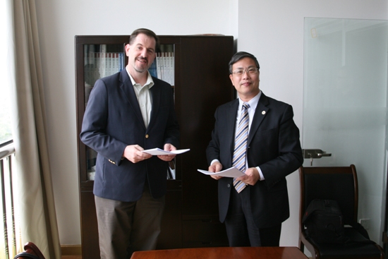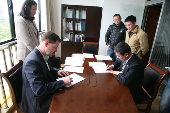 签字仪式上,金伟良院长首先代表学校对先生一行的到来表示欢迎,同时,他表示我校正处在跨越式发展的新阶段,学校的开放办学程度日益加深,我校通过包括中外合作办学在内的多种途径“引模式、引制度、引课程”,积极改革教学方式,提升现有专业建设水平;此外,未来的大学英语教学中也会引进国外优质教学资源,因此,学校的教育国际化工作亟需一批具有高水平、高素质的外籍教师队伍充实到学校的师资队伍中来,他希望美国英语学会积极参与我校的外教团队引智工程和教育国际化工作。Andy Cheely先生介绍美国英语学会是一个非营利性教育组织,总部设在美国科罗拉多,自1982年与国家外国专家局签署合作谅解备忘录,已正式在中国运作33年。学会致力于严谨的外教遴选、专业的岗前培训、持续的教学监督和跨文化教师发展机制。迄今为止,该学会已向中国派遣了一万两千余名北美教师,教授学生达到一百二十多万,与包括中国人民大学、哈尔滨工程大学和武汉大学等全国20余个省的50多所知名高校签订合作协议,他很荣幸我校成为该学会在浙江省首所以教学团队模式合作的院校。随后,双方就共同关心地项目合作细节交换了意见,并同意签署合作协议。之后,美国英语学会中国区运营总监Andy Cheerly先生和浙江大学宁波理工学院校长金伟良院长共同在协议书上签字,自此,双方正式开启了友好合作的序幕。