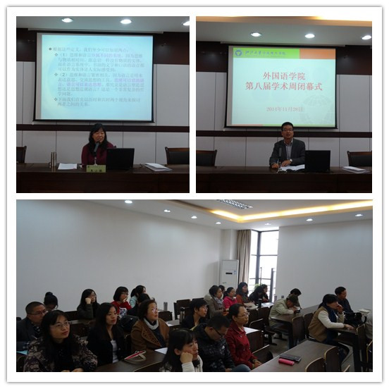 本次讲座的结束,也伴随着本届学术周活动落下了帷幕,在随后的闭幕式上,学院副院长胡海鹏副教授引用了“莫道君行早,更有早行人”和“莫道桑榆晚,为霞尚满天”两句古训,希望大家能以学术周为一个开端,过学术的生活,做研究型教师。为自身的专业发展,建构目标,确定路径,扎实行动,走出一条成功的学术发展之路。