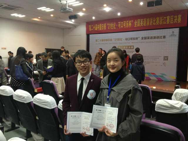 2014年11月29日,第二十届“中国日报社‘21世纪•可口可乐杯’全国英语演讲大赛”浙江省决赛在杭州浙江大学城市学院举办。经过层层选拔,我院英语专业厉修远同学代表我校参赛,并最终取得了三等奖的好成绩。
