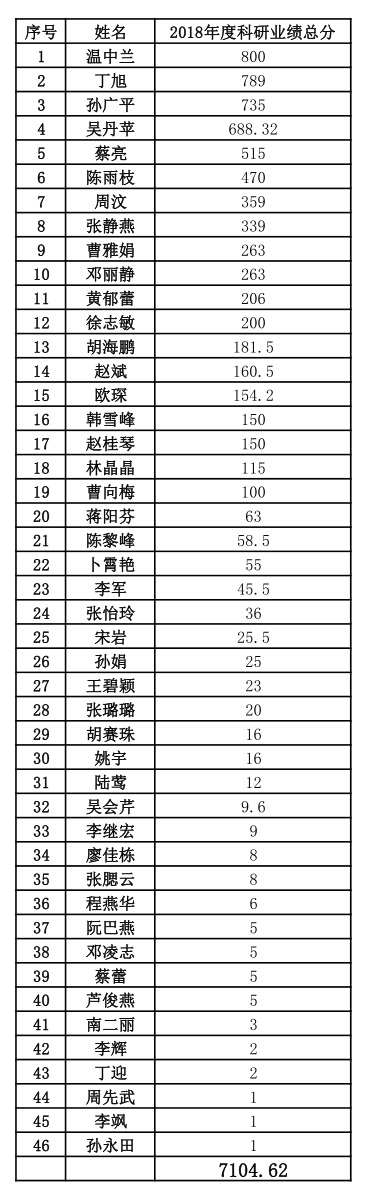 外语学院2018年度科研业绩分已计算完成,现公示如下,如无异议,该表格将于1月10日(周四)上报学校科研处。