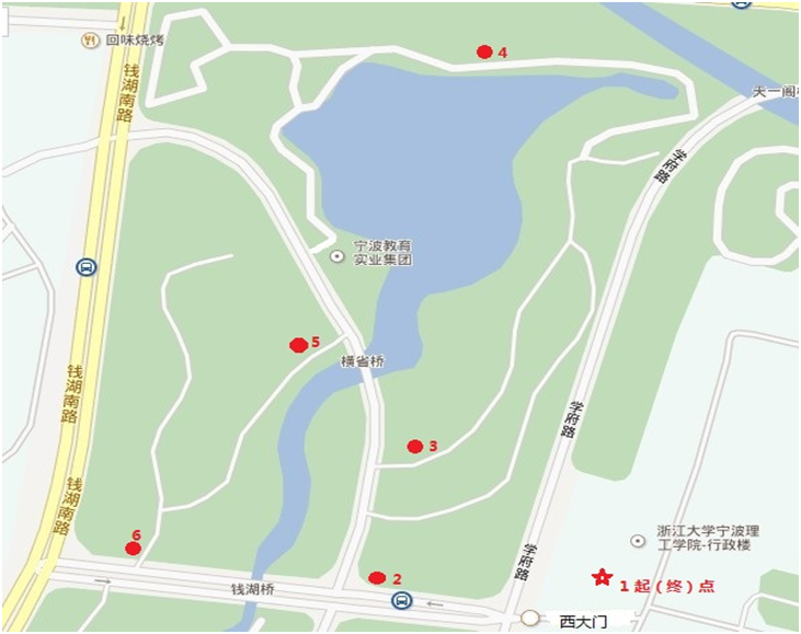附件:外国语分工会教职工环湖健康走定向活动示意图